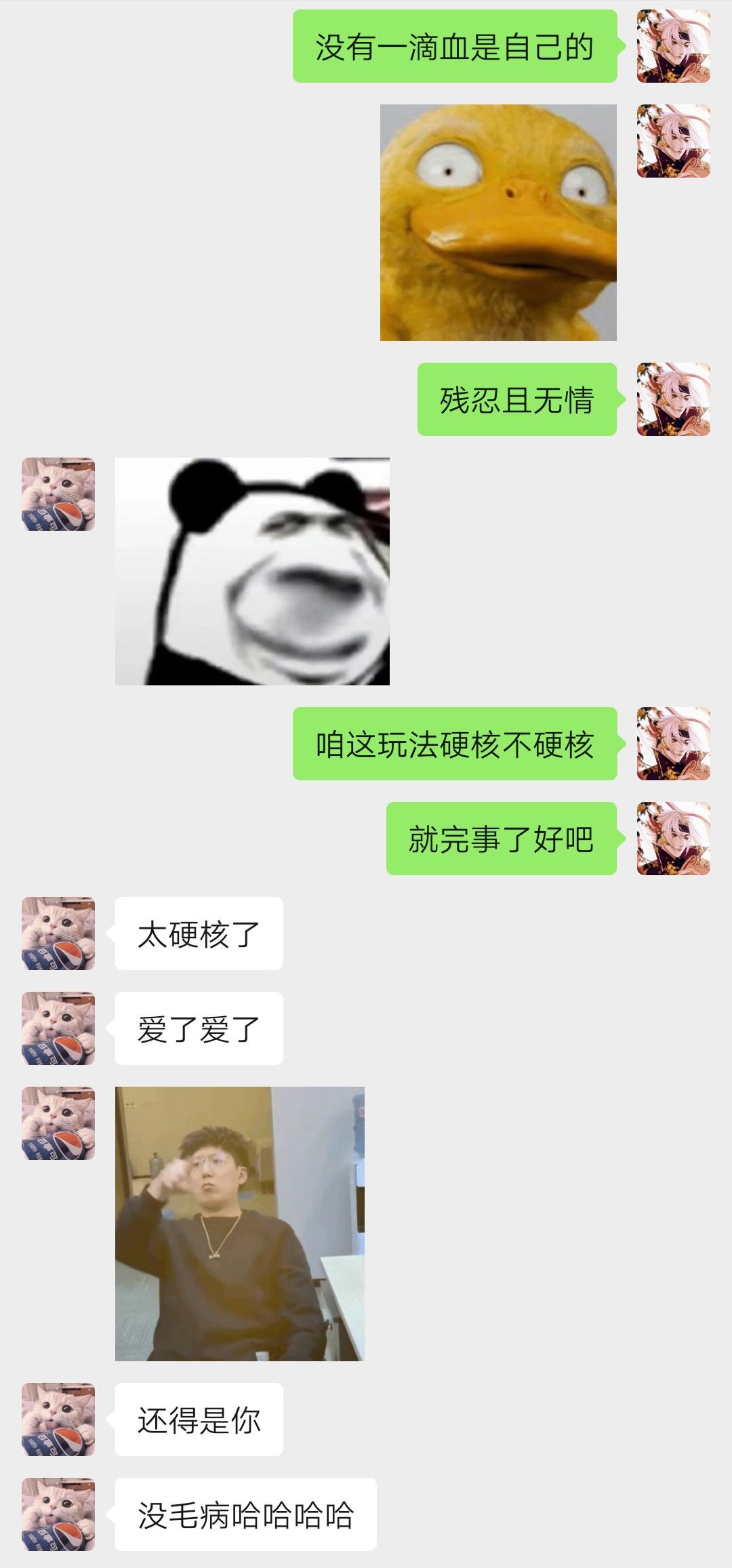好了这套体系呢是我自己悟出来的,也介绍完了,我应该有起名的权力吧哈哈,我把它命名为“共鸣极速刷盾暴击血牛铁板无敌流”男人么长一点有问题嘛?没有问题!!!!!!!(三里三气哈哈😂)