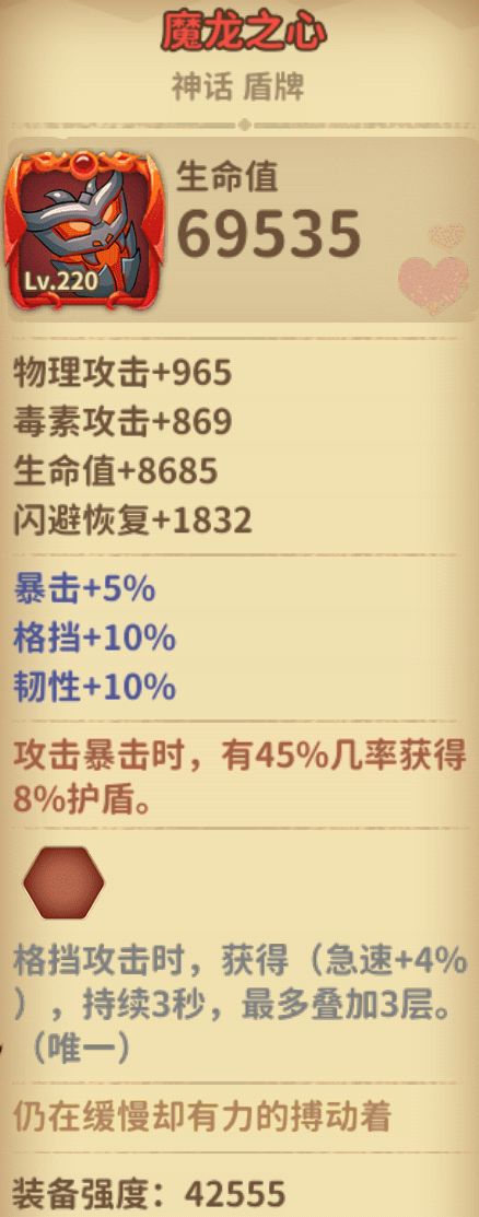 为什么这么说嘞前两套都有共同特点、盾和总攻、达成共用基础、所以我们只需要留意一个副手即可“魔龙之心.神话装备”,遇见了就留着后面教大家怎么搭配起来用~
