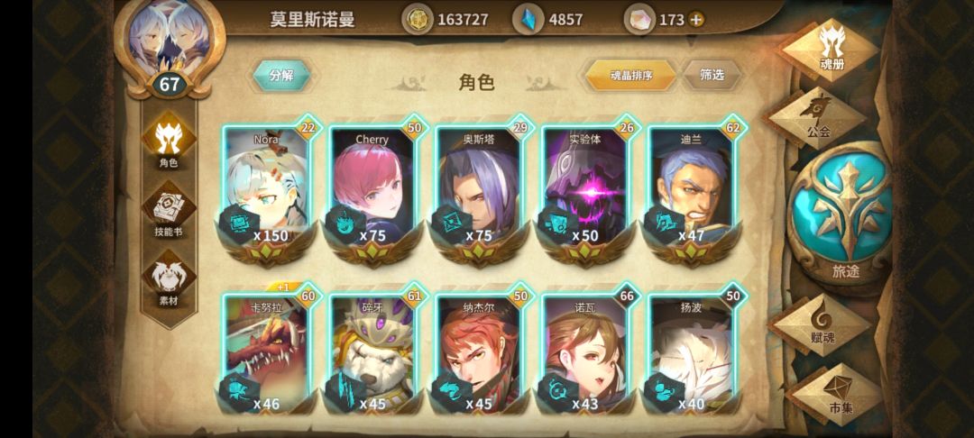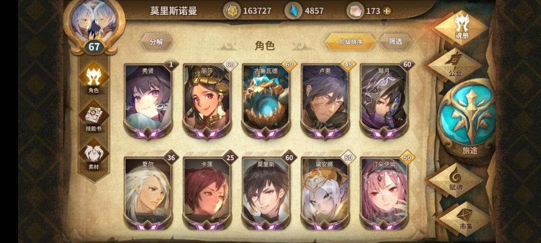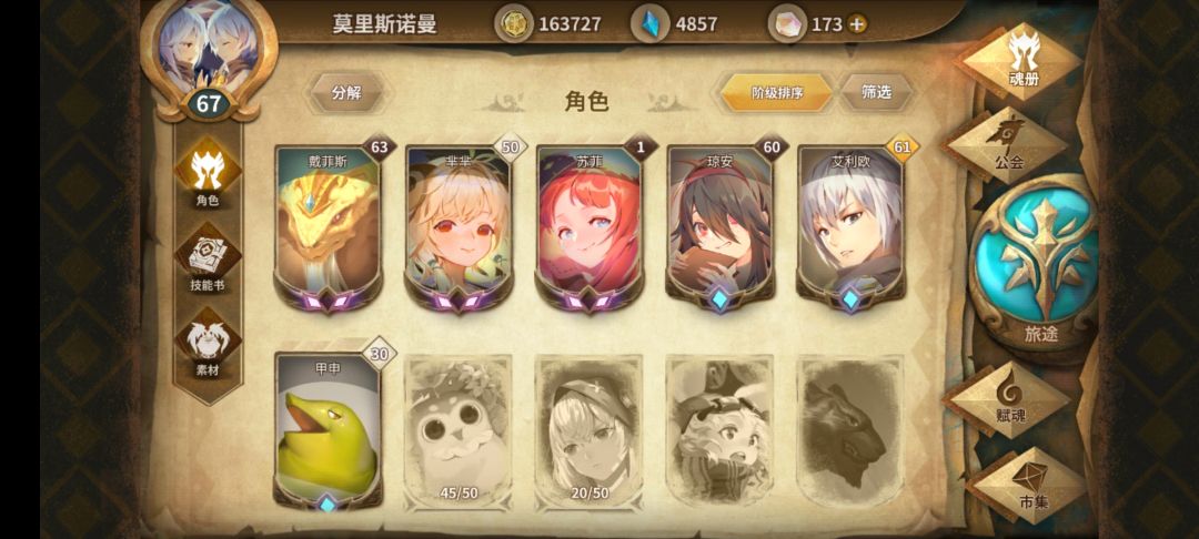上图是全部了,没发的图的常驻也都没有,缺洛,玛利亚,海德,米兰达,千雪,杰罗姆,还有雷萨蠢熊战之介之类的挺多(好像)没那么强的