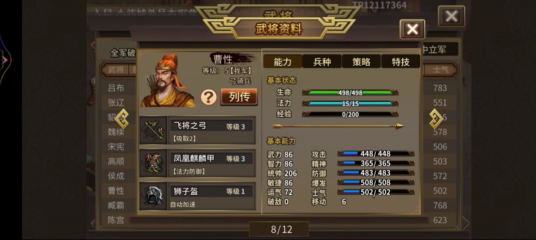 曹性带上凤凰麒麟甲,侯成给他加防,可以不吃经验抗住右路。左路勾引敌军弓骑上前卡住位。