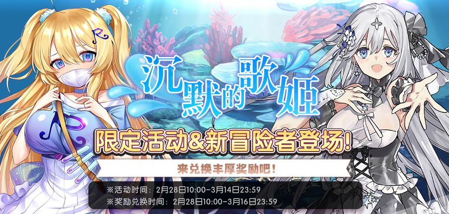 2) 活动期间,限时招募卡池【沉默的歌姬】开启!SSR冒险者【蕾娜】招募概率上升!