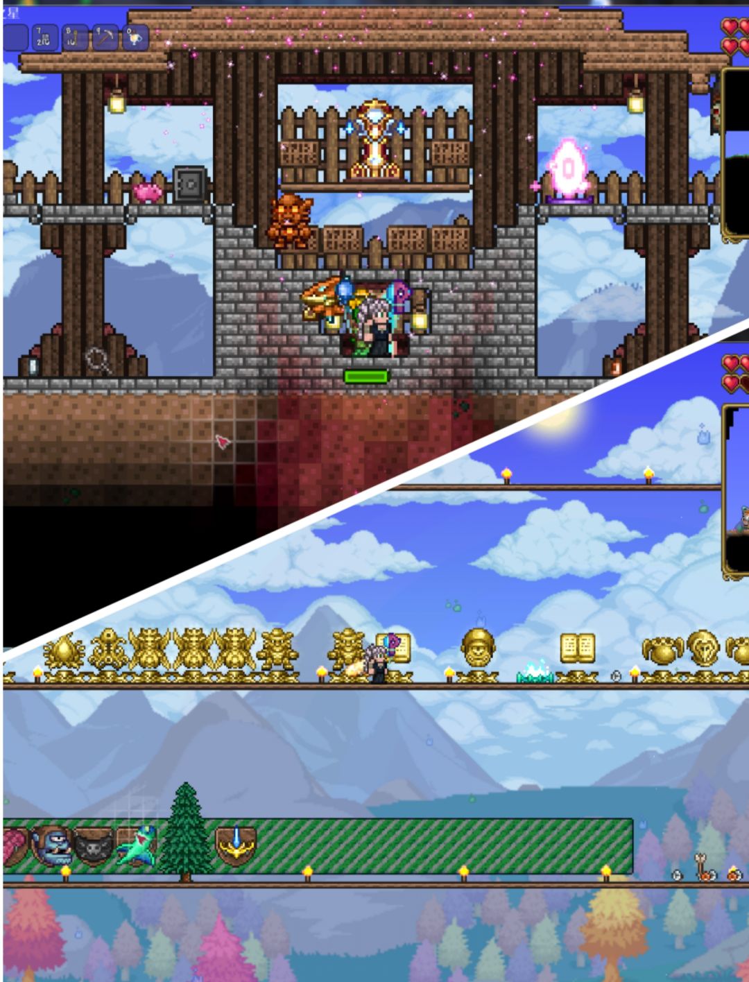 还有各种mod,各种奇葩的人物,地图物品(国服国际都有)存档,各种远古版本的泰拉瑞亚。