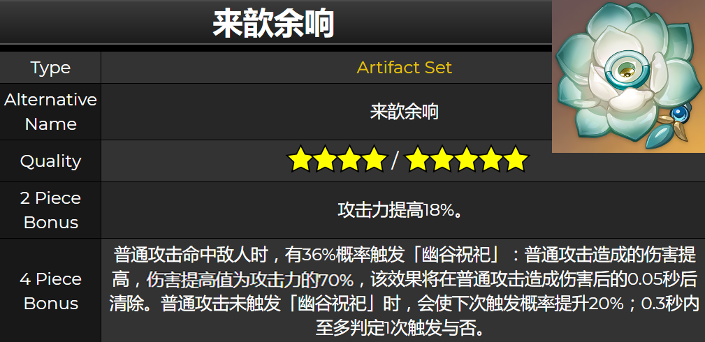 另外还有就是圣遗物的问题,新的圣遗物据说叫“来歆余响”,不管是名字还是造型,简直就是和神里绫人天生一对,都不用说,肯定是最合适的,让人又爱又恨啊,好看是好看了,又得刷一段时间了。