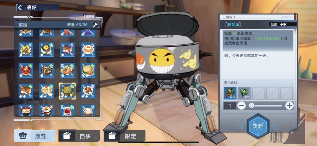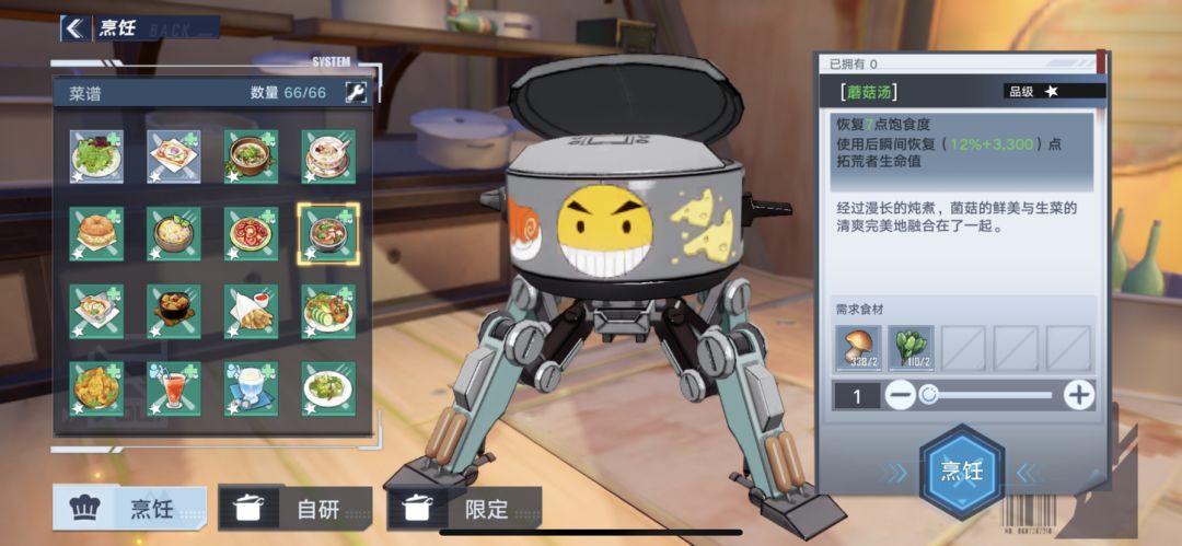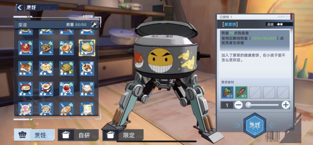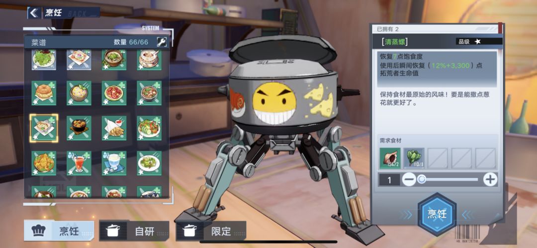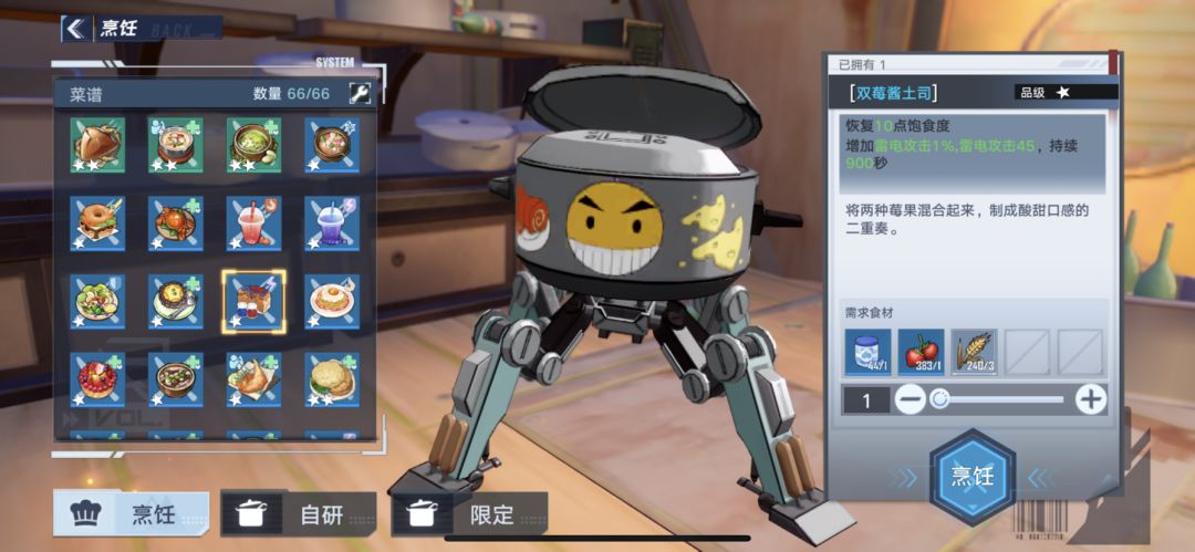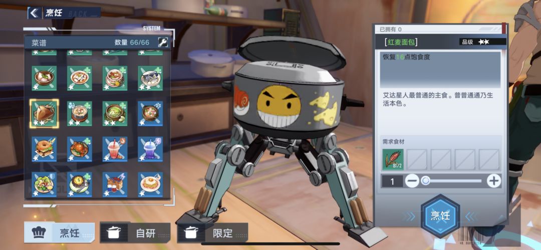 有的食谱需要等级,任务或者购买食谱才能获得。