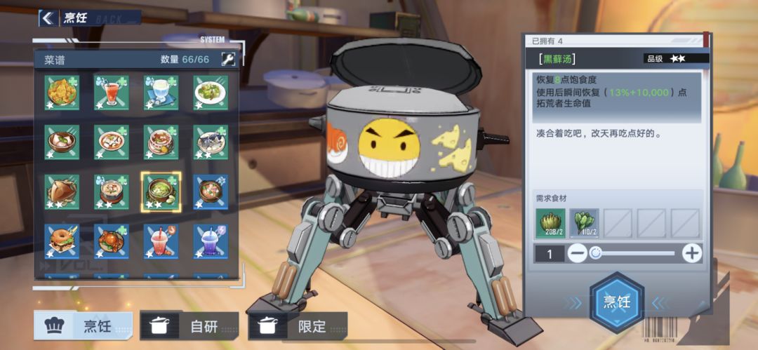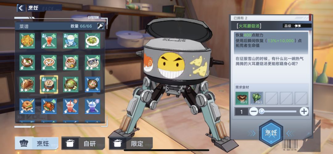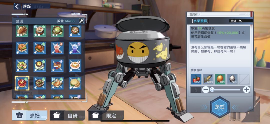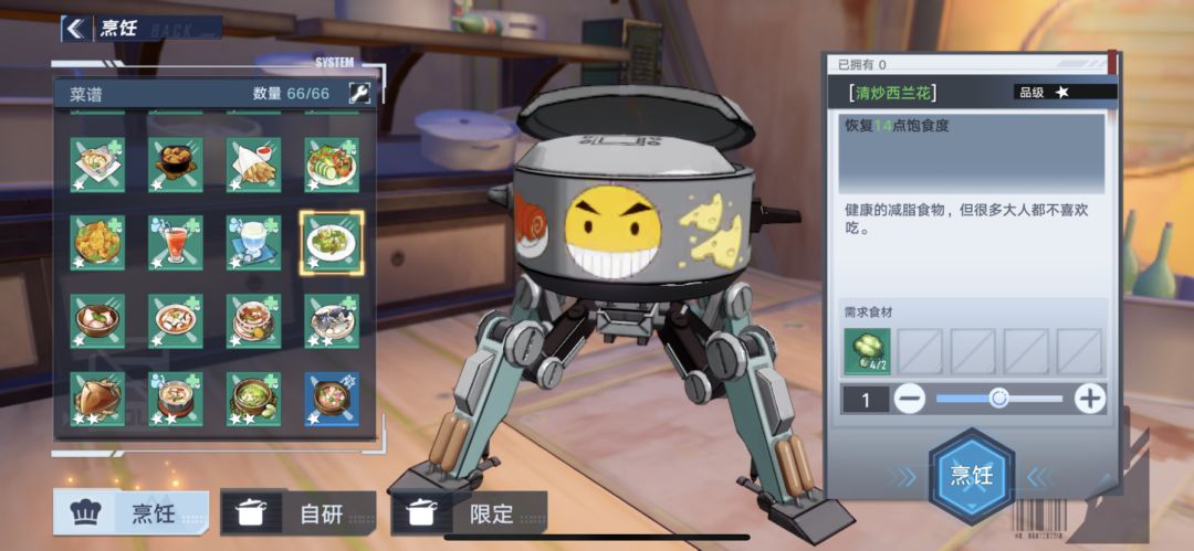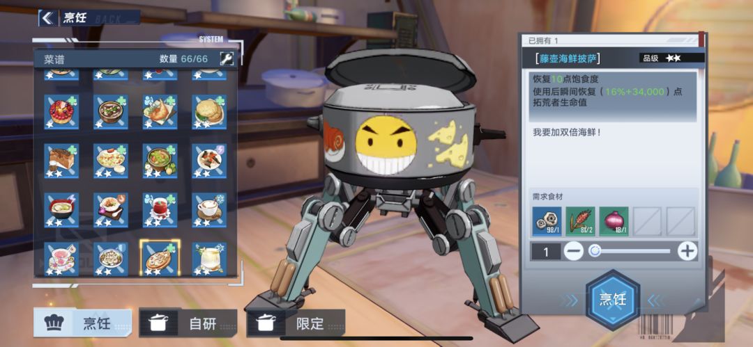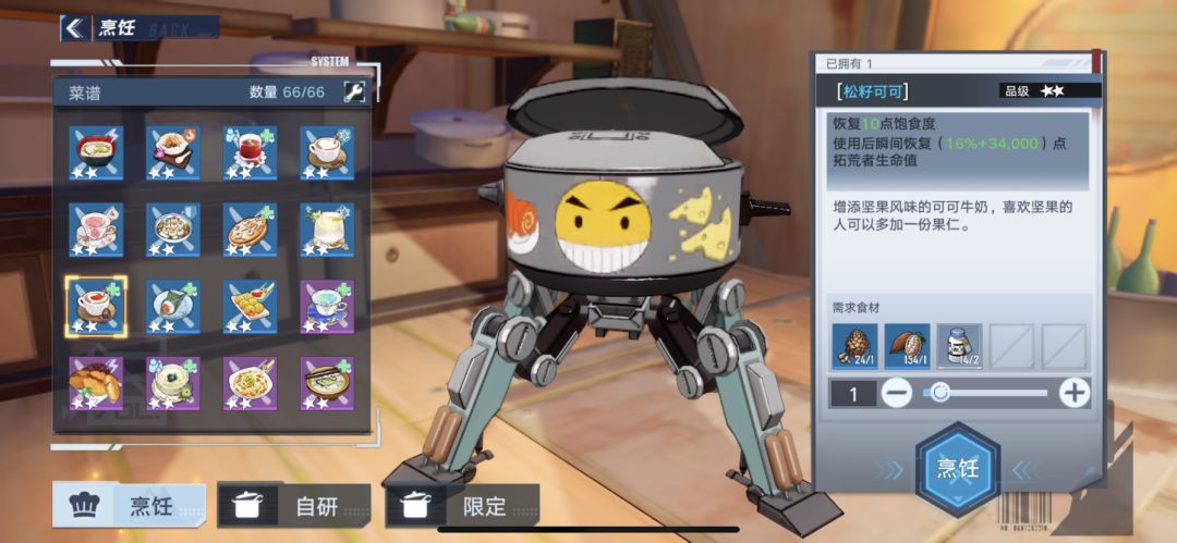有的食谱需要等级,任务或者购买食谱才能获得。