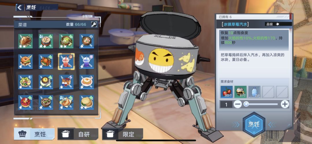 材料:草莓6 蜂蜜6 气泡水3(烹饪商人购买)