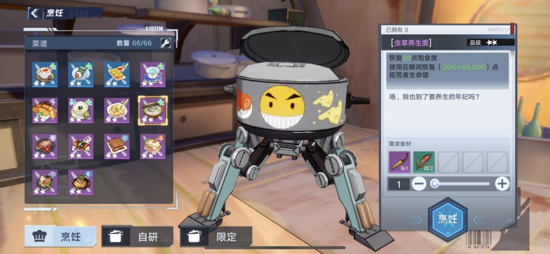 本期详细给大家做一个食谱全集,因为66级了还是没有出新食谱我也不想等了,以后出新食谱我在加进来。