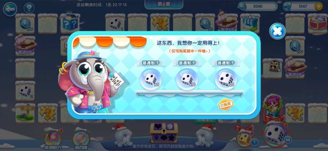 2.完成每日骰子任务领白嫖骰子,卡第六关无限刷