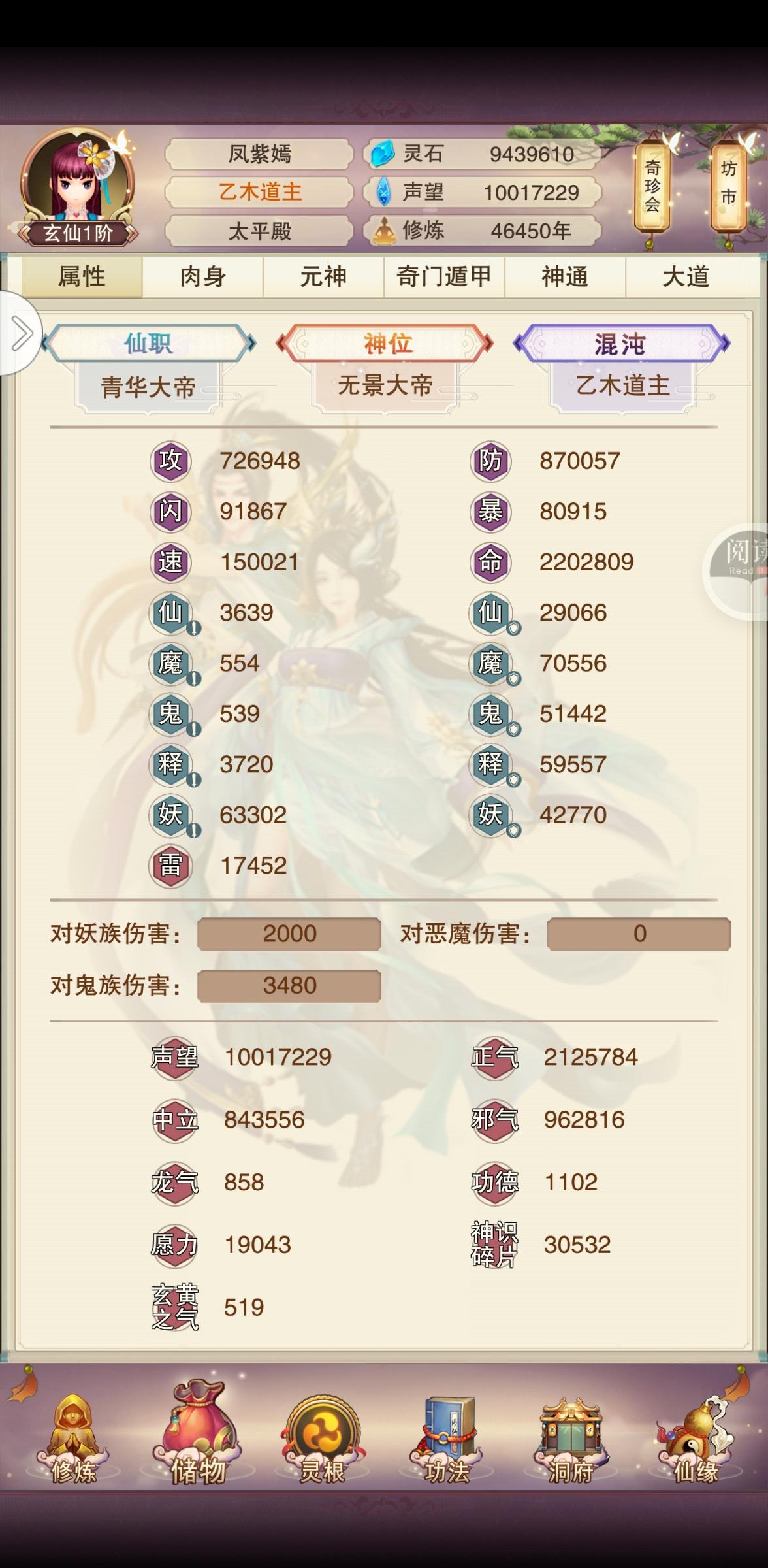339点完了攻防血技能,大约加了6万防御,5万攻击,9万血……
