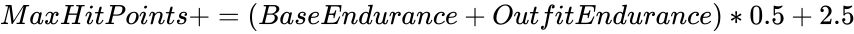 (其具体算法更加复杂,此处列出的只是基本公式,因为在避难所中没有具体重量单位,而这些公式默认重量单位为辐射系列世界观中的“磅”,所以该公式影响避难所中数值的可能性很小)