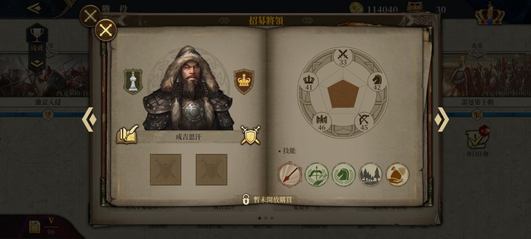 未来成吉思汗一旦登场极可能取代目前的阿提拉成为全游戏最强弓将,弓兵神技远程战术大师加上骑兵神技骑兵战术大师,森林地形增伤,堪称弓兵神技的强弓劲弩(简直不知道比阿提拉的抢钱强多少倍),而且以上技能全是初始三级状态,以及拿来凑数的后勤大师。相比之下阿提拉的射击大师不如远程战术大师,领导能力用处不是特别大,丛林战和平原战其实感觉五五开,还有抢钱技能那个拖油瓶,阿提拉剩下的优势就剩急行军这一条了。不过大汗天生就是弓骑兵和骑兵兼职将领,压根就不需要急行军,其专属武器通行证免费得,就是不知道将领要不要氪金,要是将领也要氪金的话那零氪玩家的一弓选择就只剩下熙德和黑太子了,希望e社能懂点事。大汗专属兵种蒙古突袭者,别看虽然是紫色的,但是配合上马穆鲁克骑兵,一回合的攻击次数可以达到三次,配合主动技能强弓劲弩简直就是狂暴输出。