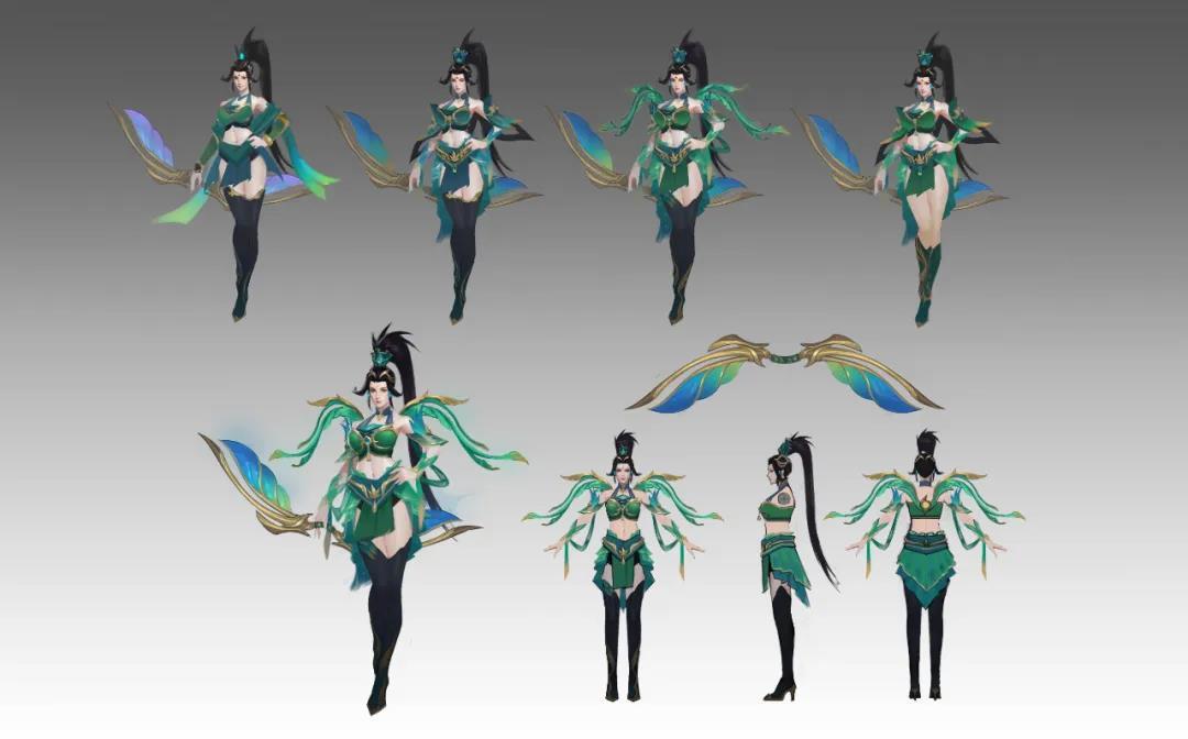 我们对大乔的服装和整体造型做了较大改动,例如裙摆、鞋子、臂甲等的造型都进行了重新设计,头饰和服装上也进行了细节上的改动,取消了大量复杂的细节,使得升级后的大乔整体造型看起来更加灵动,也更符合她水神族的身份。