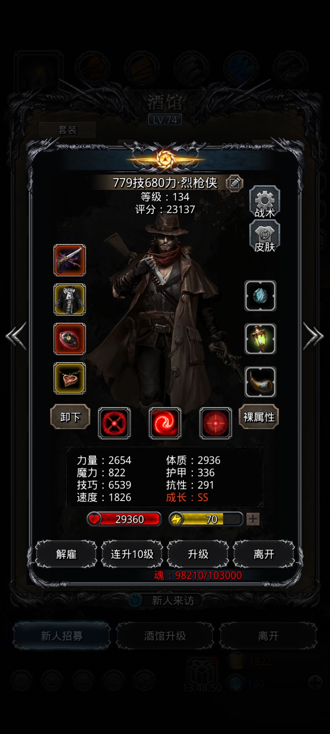独裁:高技 越高越好 上面三个角色配完了剩下的技巧怎么高怎么叠 不用在意装备属性 死堆技巧