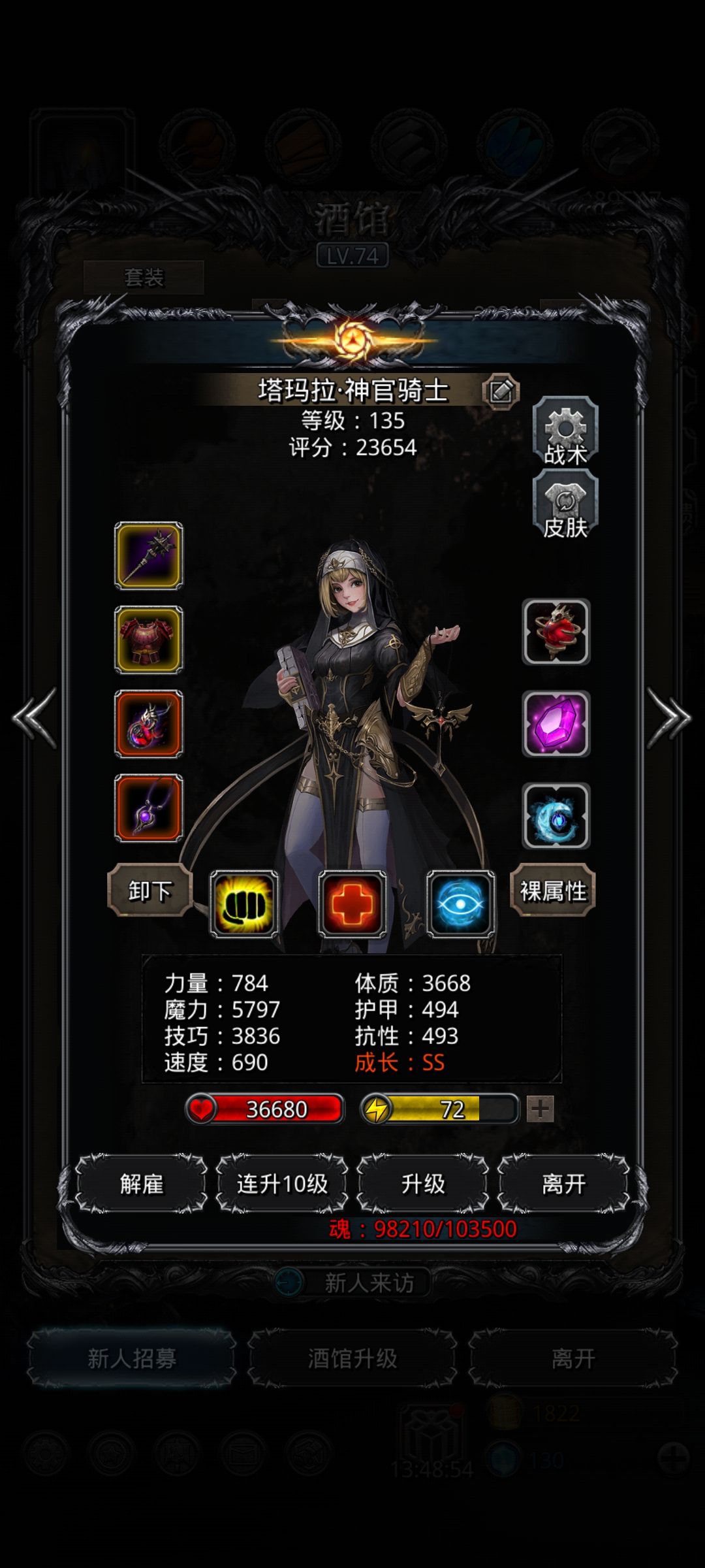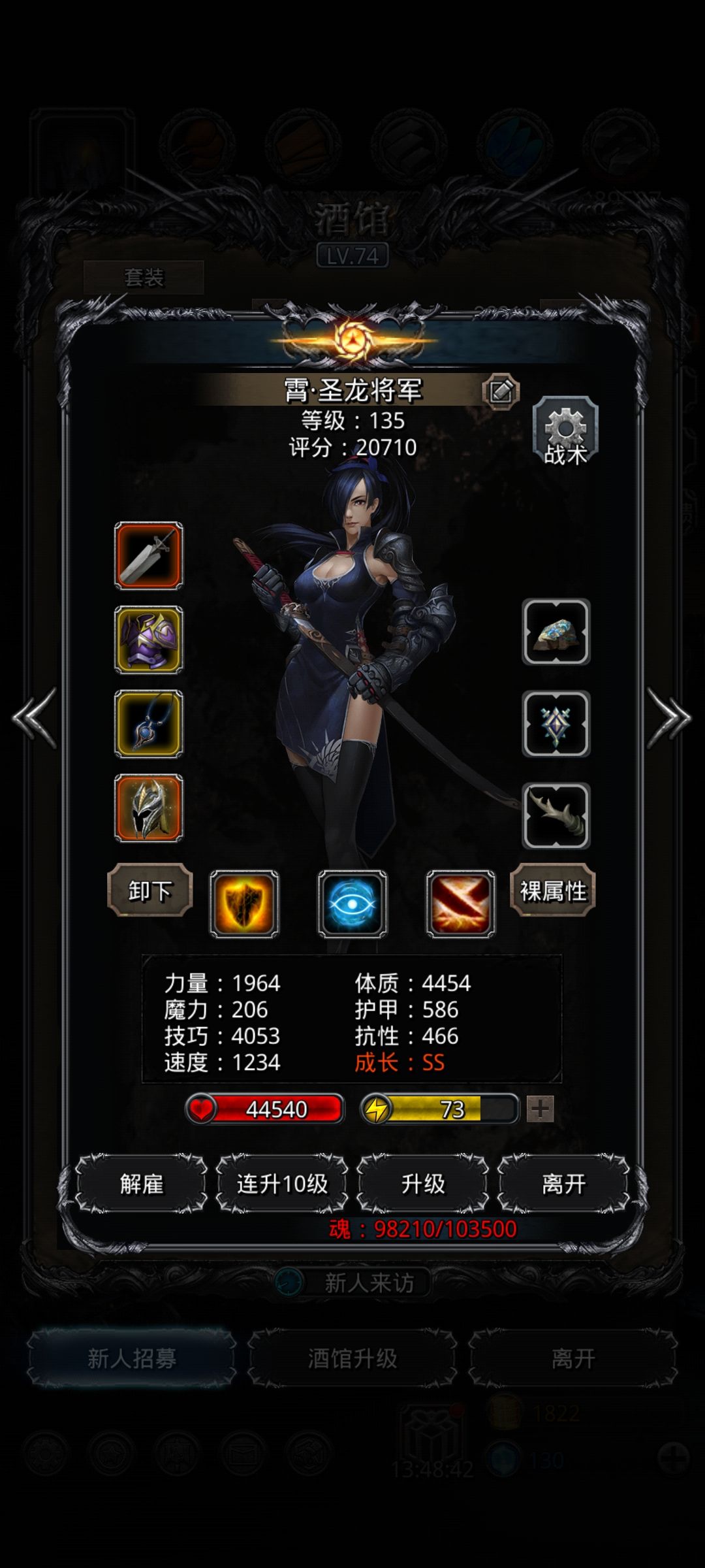 独裁:高技 越高越好 上面三个角色配完了剩下的技巧怎么高怎么叠 不用在意装备属性 死堆技巧
