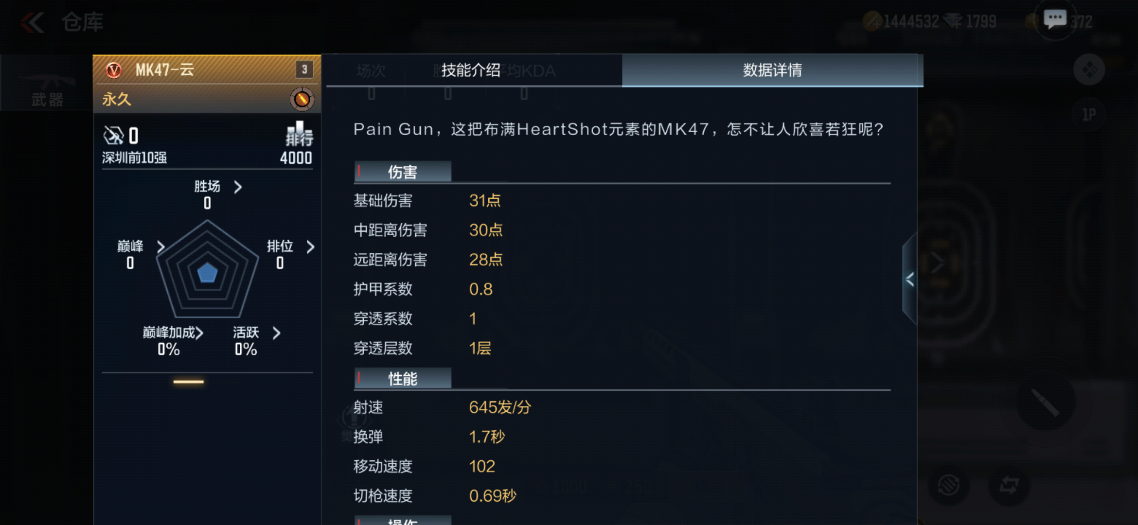 此外,MK47可以说是M4A1的近亲,因为它的伤害、射速、穿透力以及移动速度都和M4A1极为相近。如果说81式是通过垂直弹道增强了精准度和稳定性的AK47,那么MK47就是通过垂直弹道增强了精准度和稳定性的M4A1。