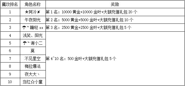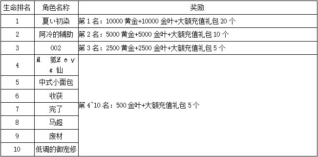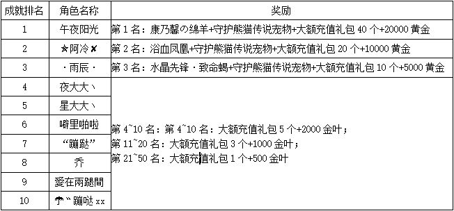 《世界OL》2月新区活动获奖名单