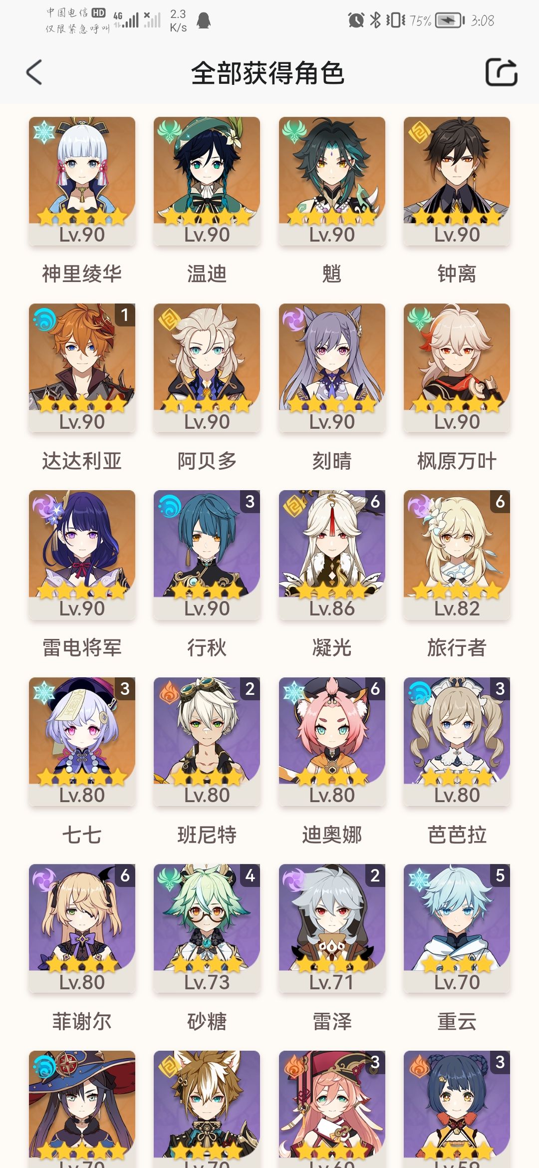 登录还发现已经触发了星之归还,公子多了个命座,还多了个一命琴,那人还把我给钟离的护摩拿去给了魈,魈和和璞鸢又在雷神身上,把万叶的全精通搞成了两精通一攻击……甚至练度倒退,不过号没被毁掉。