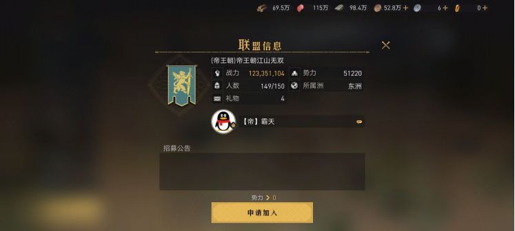 我也是在【帝王朝】向君临逐步推进的间隙,请到了盟主——【帝】霸天,来接受此次采访,下边让我们来了解一下这只身经百战的强大联盟组织吧!