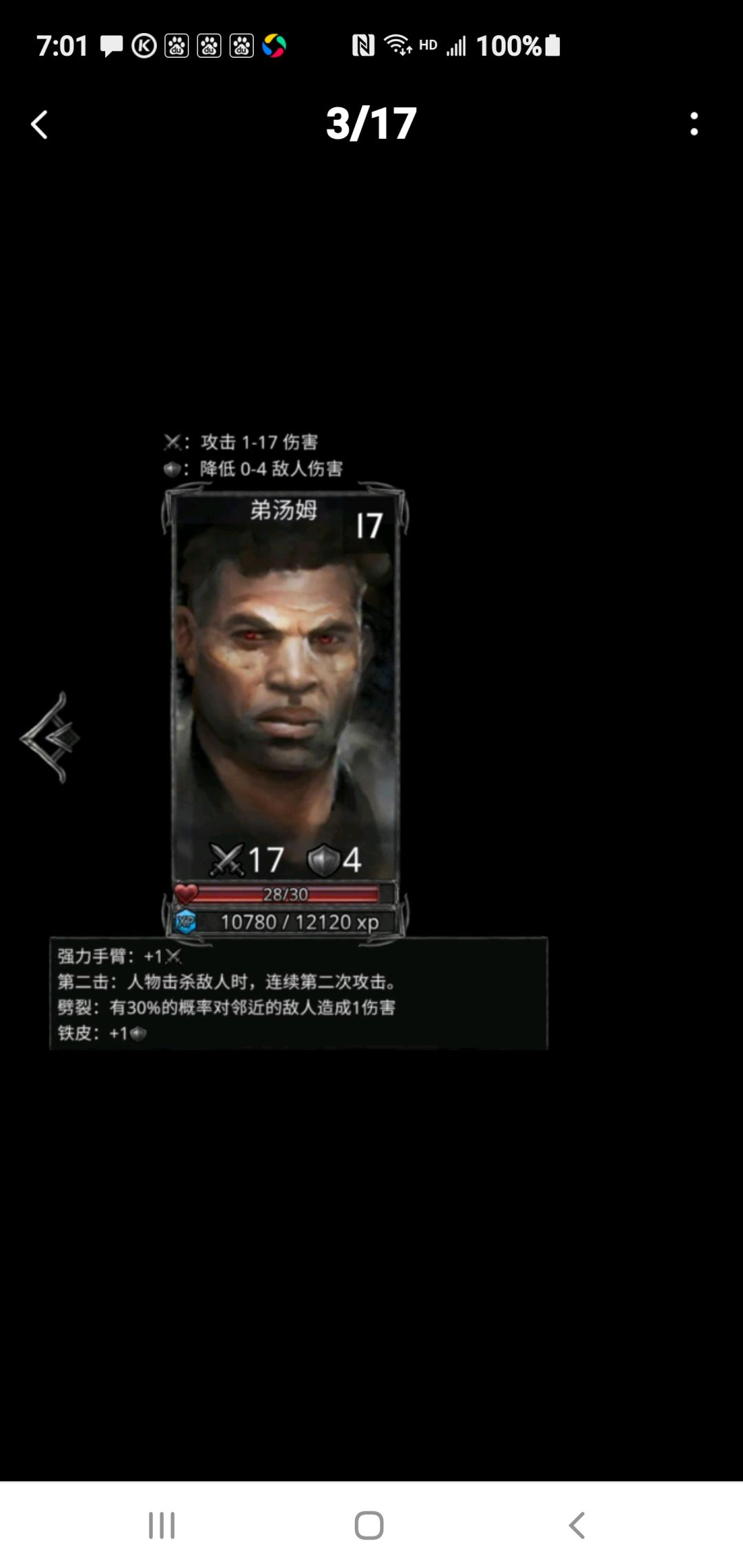 有粉碎,强力打击,强力手臂,可做攻击主力,高攻装备优先给他。