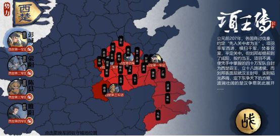 ● 完成历史事件会继续获得和收集到大量西楚的文物和全新的战法,完成其中一个事件还可以直接获得西楚霸王:项羽