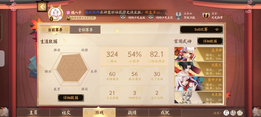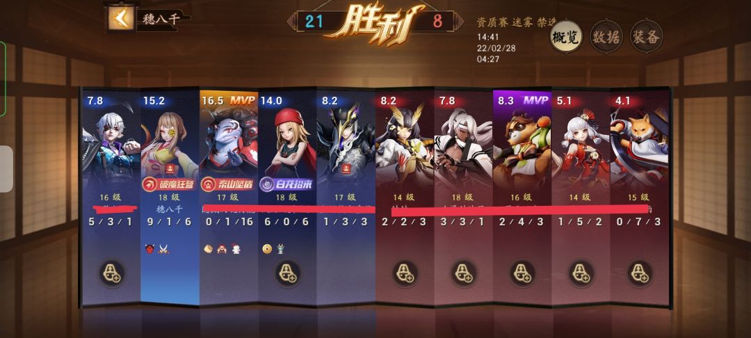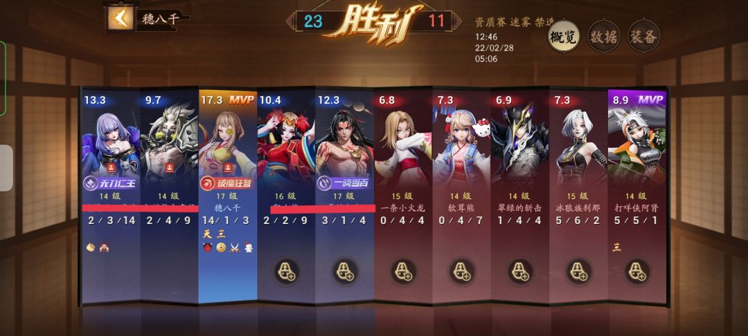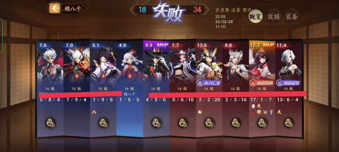 由于我一晚上没睡精神状态不是特别好,其实想玩辅助,但辅助男拿了位置,我也拿不到中路,只能被迫补位射手和辅助男走下路,在一开始金鱼姬输的时候,又玩了一把,我就发现辅助男只用化鲸,所以在一局没有ban掉虫师的情况且我们先手的情况下,我问他可不可以玩虫师,因为我不想老被控,他说不会然后又秒选了化鲸,虫师自然被对面拿了,然后这一整局就是,他控,控不住,我打打不死,对面来抓我一抓一个准,根本没有能保我的能力,毫无输出环境可言,我就像只有一个人在下路,他不跟我,我在家清兵线被对面骨女捅死了他悠悠来了一句,唉!百目鬼!我可以理解一些人对某个式神的喜爱就想给他打排名,但你不看阵容就选真的像个大冤种,不管什么阵容,直接一手化鲸。