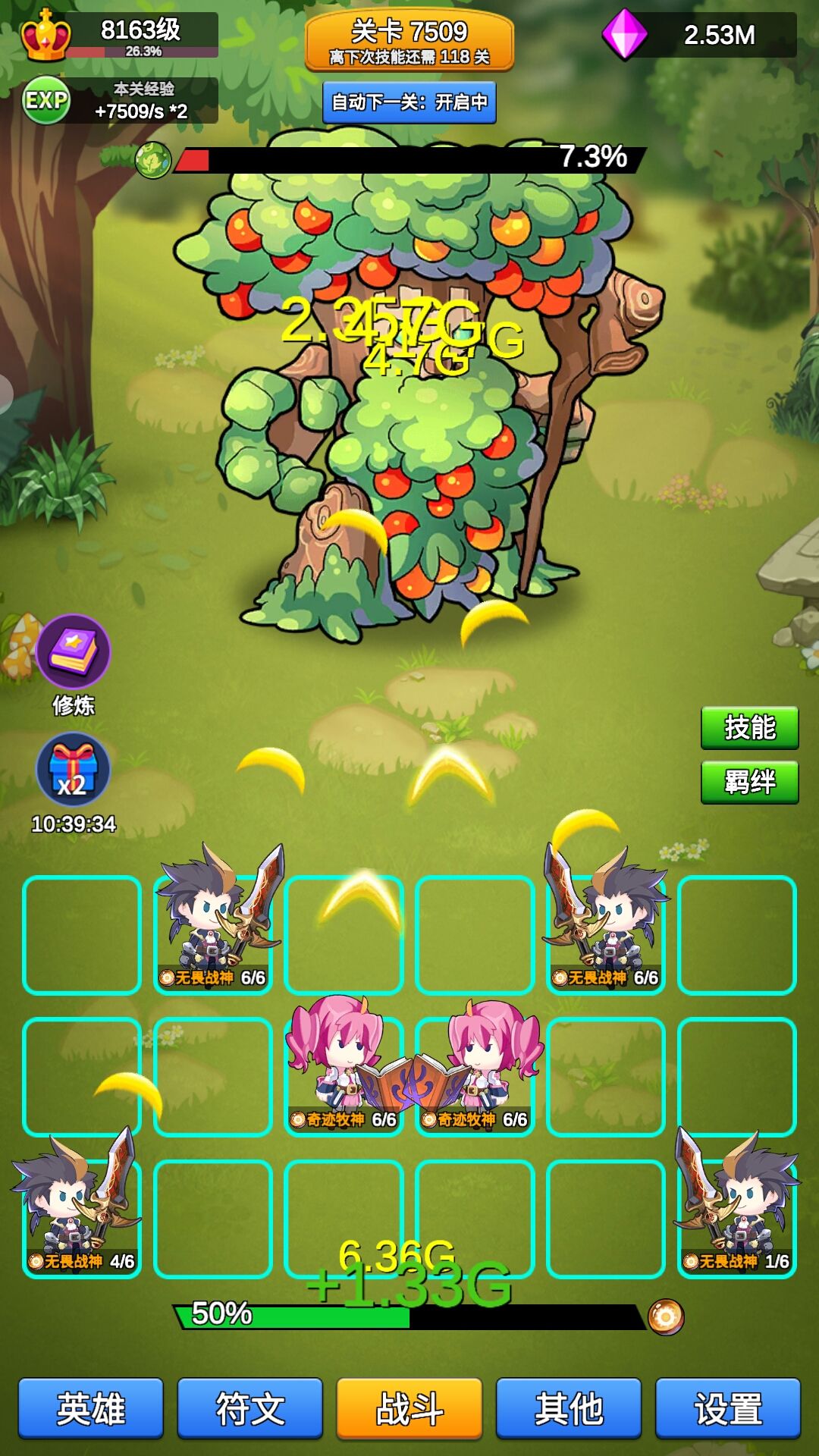 就以上面的图为例,我用的战牧,输出倒是有一点,要让怪物狂暴三次后才能打死,三次狂暴正常伤害是3G,暴击6G。