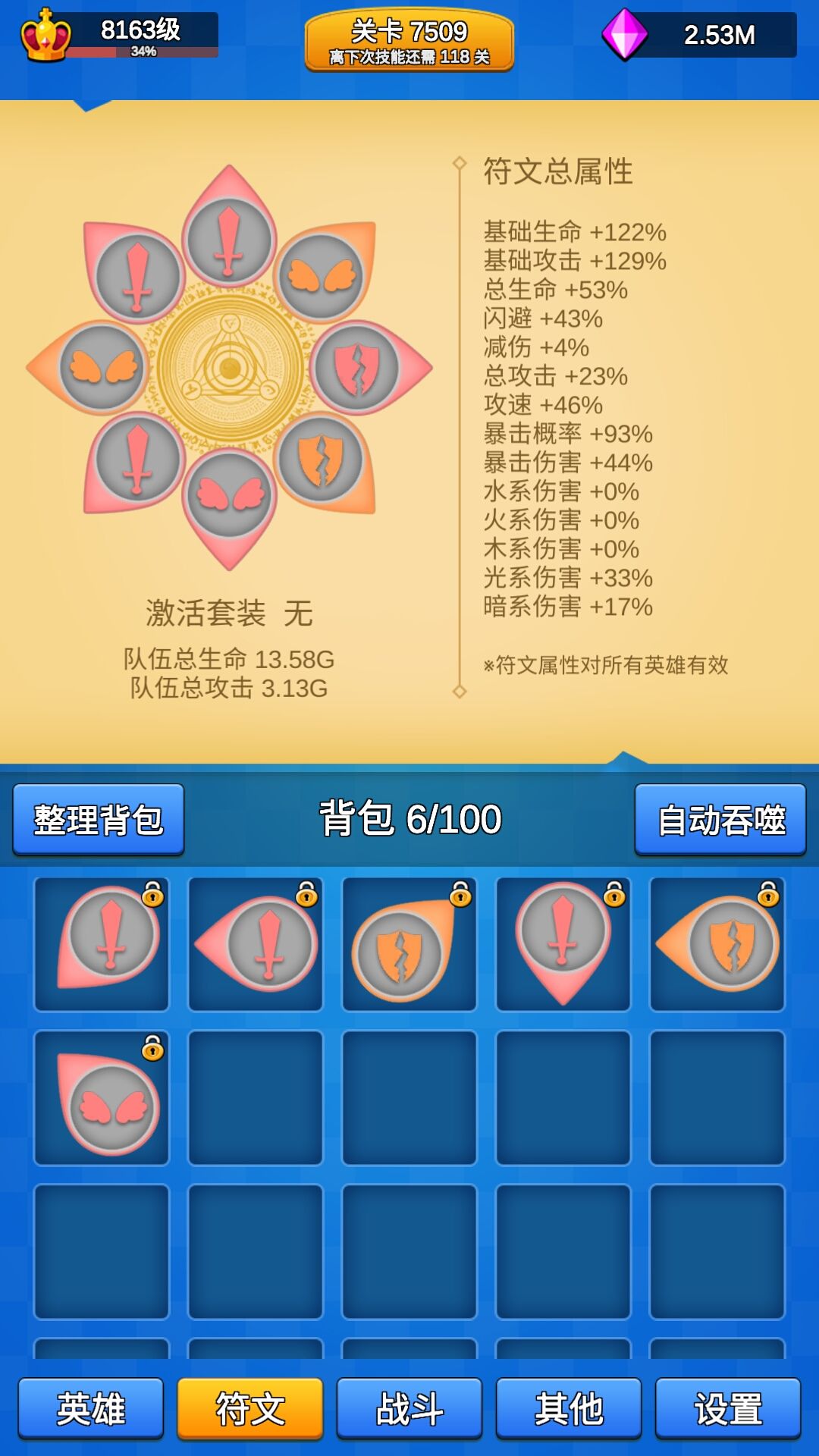 (骑士其实不怎么肉的,符文加血最多,楼主仅仅是多带了4条生命词缀,血量直接9G跳到13G,而一个符文可以带6条词缀。所以牧师多骑士少才是最优,要续航的,骑士只是用来触发一下技能的工具人,指望这玩意肉?打你4G你回1G,迟早耗死。多几个牧师的话,打你4G你回4G,迟早耗死)