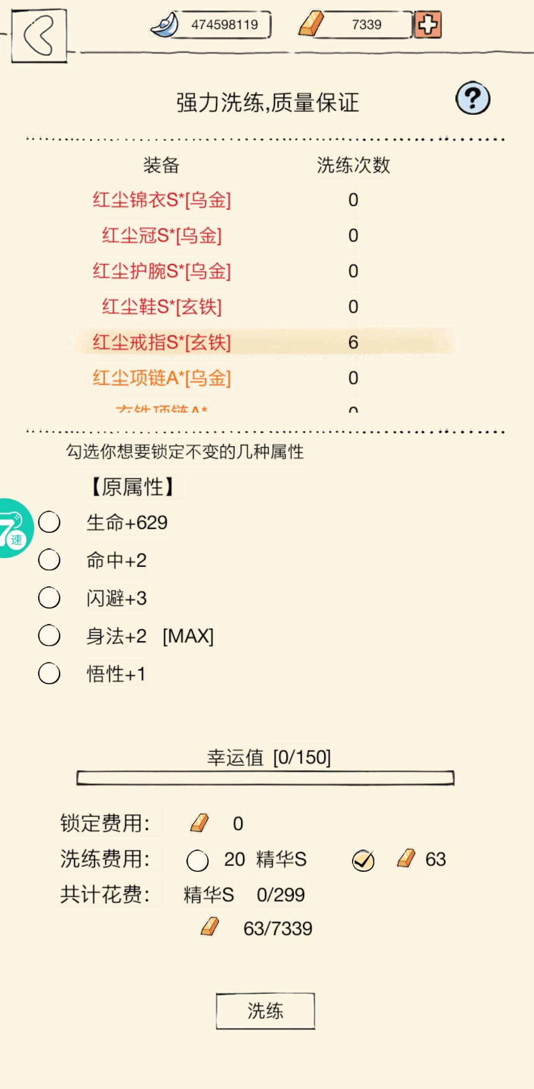 150次,虽然是双属性,你给我个臂力或者根骨也行啊,给额外的悟性有什么用嘞