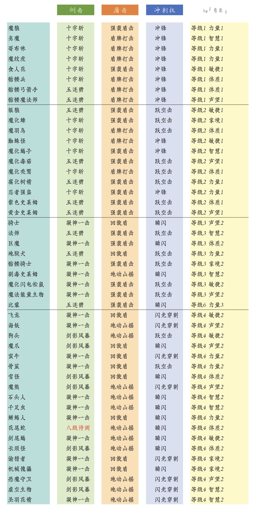 高级技能基本靠遇事件学的,有在冒险公会学到的话再附一下智慧和等级(仅供参考)。