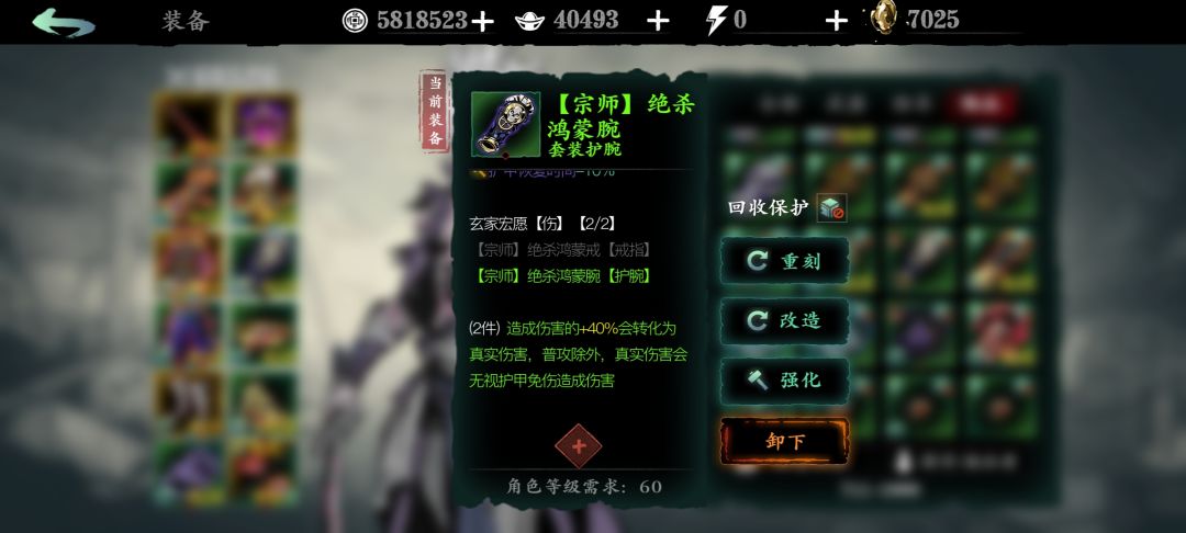 相对而言狂龙紫五的真伤提升却是实实在在,而且还可以如上图一样只带灭戒配合真龙戒指,让装备更具多属性。因为灭戒就是现在最好的输出装备,它的独立伤害太容易叠加了,而且是目前唯二的全角色通用独立伤害装备。