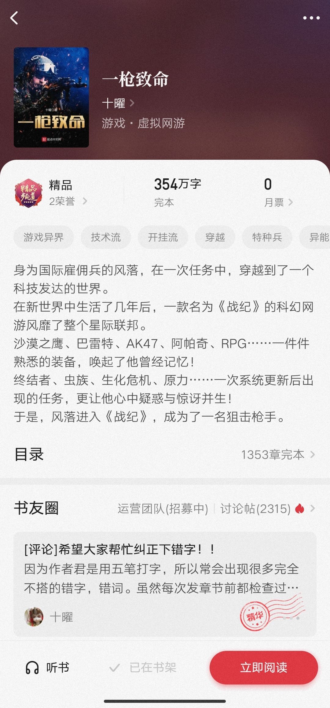 PS:两本写的都是我觉得最酷的兵种狙击手(小说内以用狙击枪为主要攻击手段)(我就不贴图了emmm)