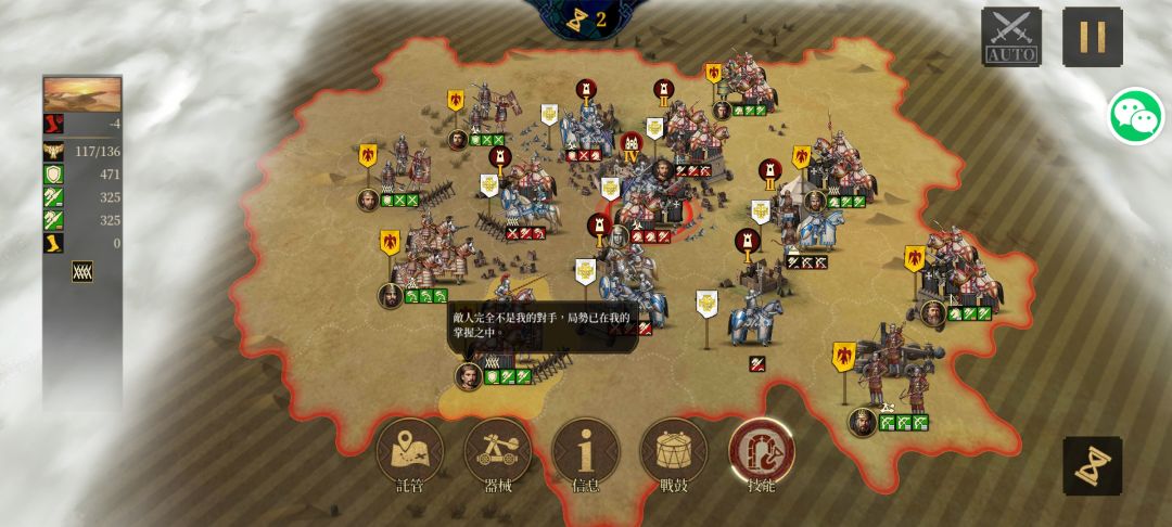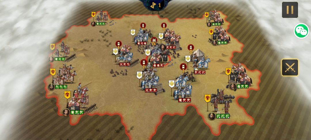 第一回合先突破地方外围防线,狮心王的拦截给到外围的无名将,第二回合就能轻松拿下敌人外围防线。