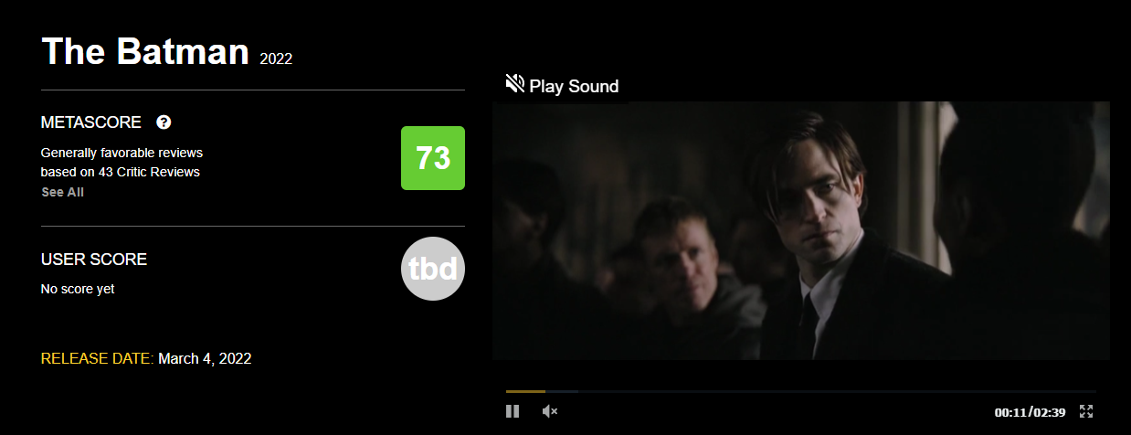 今日,电影《新蝙蝠侠》影评网站开分,截止发稿前,