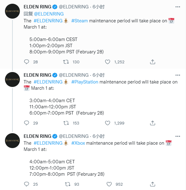 今日,《艾尔登法环》官方宣布,游戏将于今日中午对服务器进行维护