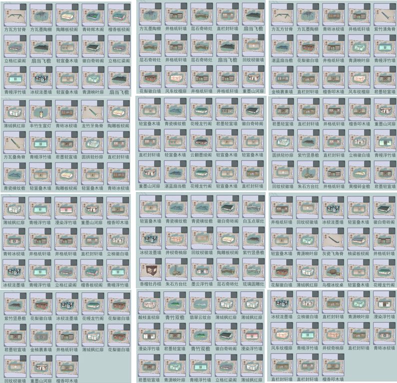 桌 柜: 冰裂桌,金楠流云柜,淡绯翠竹榻,金楠福纹案,赤柱卷月案;
