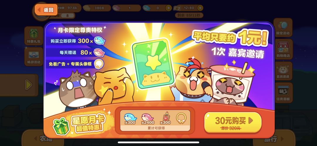 然后商城里的每日限购也可以获得每天10个红鲷鱼