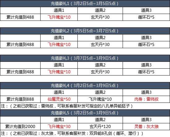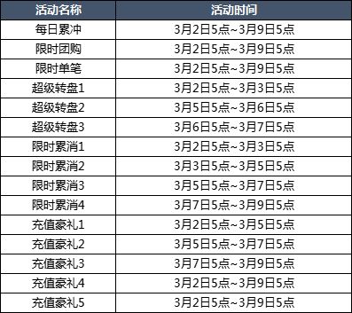 【活动名称】充值豪礼【活动时间】3月2日5点~3月5日5点