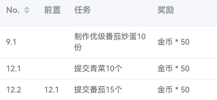 No为该支线编号,比如支线9.1,指的是完成主线9开启,前置为空,说明解锁没有前置支线。又如支线12.2,就需要完成主线12并完成支线12.1才能解锁。