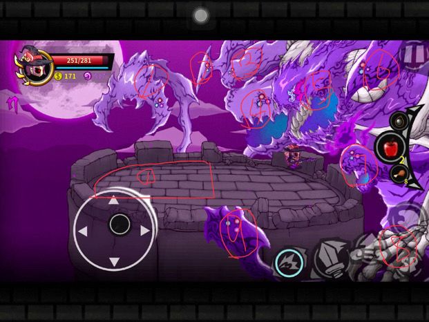 4 下面各图是boss各个部位的攻击范围。认真看,小细节我都标出来了。