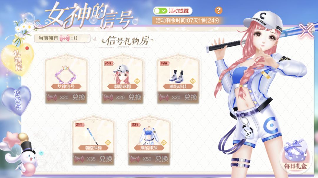 在3月4日-3月18日期间,参与任务可获得兑换道具,消耗兑换道具可兑换奖励,帅气满分的潮酷棒球组合装和女神信号头像框都在活动中等着小主人们get啦~