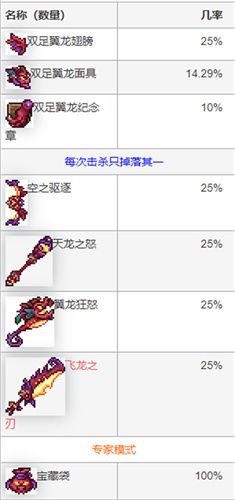 双足飞龙:事件中最终boss,飞行速度快伤害高,。掉落物如图: