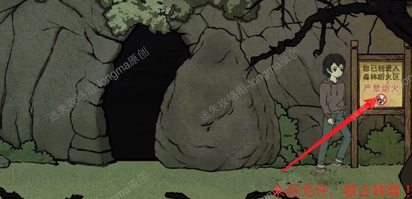25.来到山洞外面,点击右边严禁烟火的牌子,在牌子上面得到一盒【火柴】。25 25.1