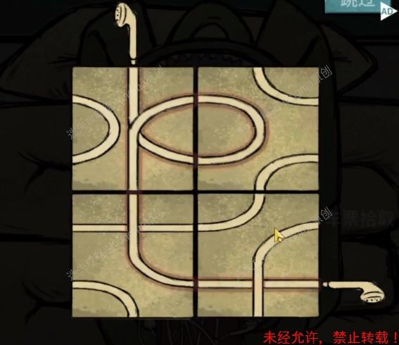 9.进入到房间中,在门的左边打开灯,右边的墙壁上完成三个拼图小游戏(难度较小,点击旋转拼图至正确方位,然后放在正确位置上)。9