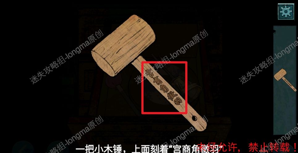 22.观察之前得到的木锤,记住木锤上面标注的古代五音:宫商角徵羽。22