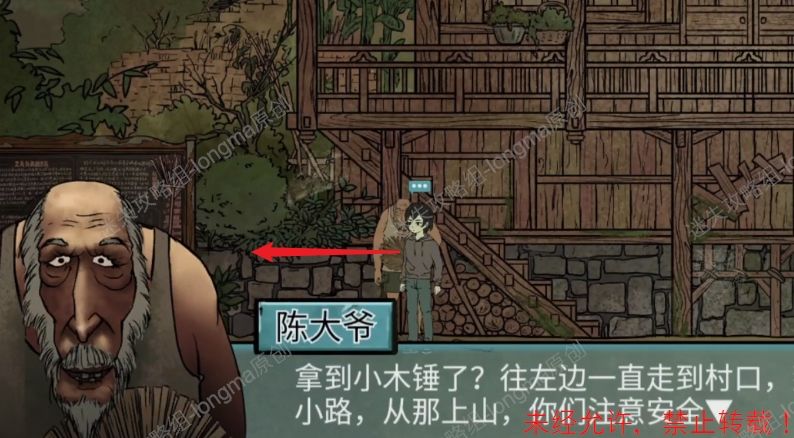29.使用木锤敲击编钟,完成迷宫游戏(按照来时的路线回去),回到住处,和陈大爷完成对话,向右走入村庄,第一章结束。29