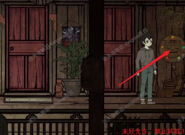 7.从室内的木梯走向2楼,来到第3个房间的门口,在竹篮子里得到【符号环】。7