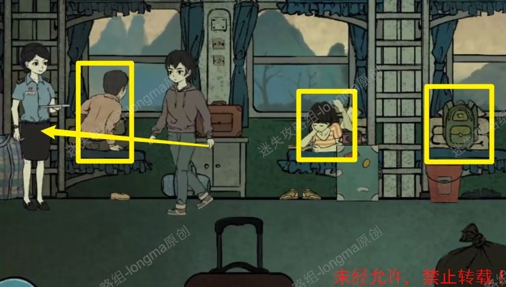 2.进入火车之后先与石老师交谈,再走到小雅面前,与小雅交谈,触发乘务员检票剧情,后来到最右边车厢点击背包完成小游戏,找到【火车票】,将【火车票】交给乘务员。2