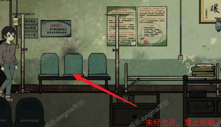 33.点击门口墙上挂着的抹布,得到一块【抹布】之后,向右走进入医院后面的房间。33
