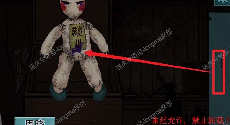 46.进入到2楼第2个房间,在最左边的箱子中,第1次发现木偶,并使用银针,在箱子中得到【剪刀】。46