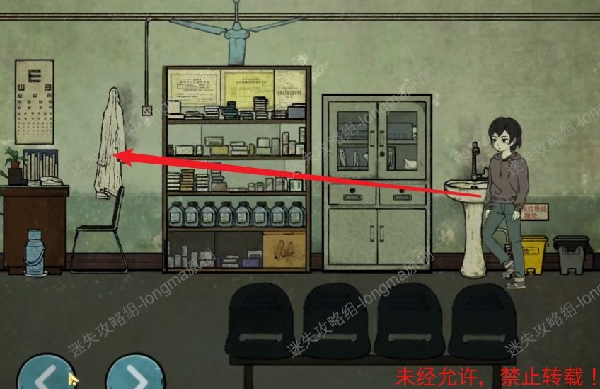 52.从医院住院的房间醒来,来到前面药房,在医生的口袋中找到一张密码纸,记住密码纸上的图形。52 52.1